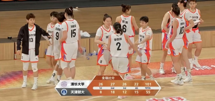 末节决战,夏荣再中两分,但李嘉琳三分也开和给出回应,双方命中率都有下降。杨雅婷三分还能扔进,王镘淋连续取分回应帮助清华大学保持住40分以上领先。随后双方继续拉锯战,刘琦和李嘉琳三分还能连续命中,清华牢牢掌握住大比分领先,最终清华大学101-55大胜天津财大。
